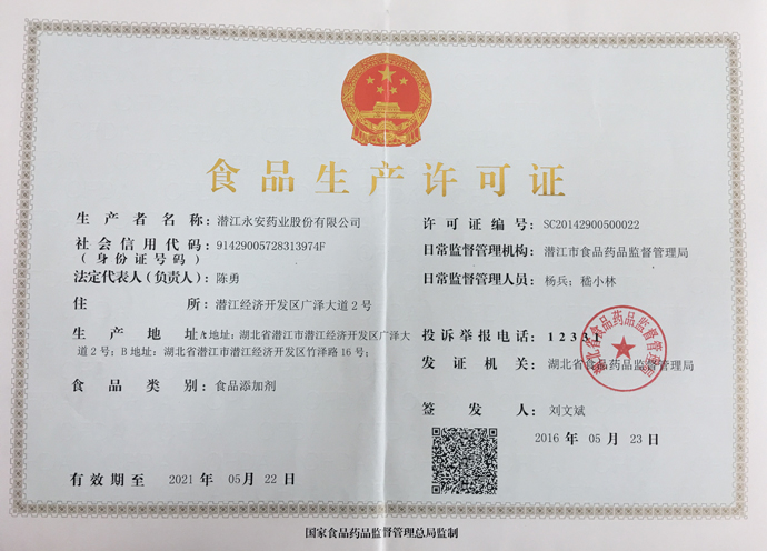 潛江永安藥業(yè)股份有限公司成立于2001年,坐落于江漢平原腹地潛江市國家高新技術(shù)產(chǎn)業(yè)開發(fā)區(qū),占地500余畝,注冊資金貳億玖仟肆佰陸拾捌萬貳仟伍佰元整,是一家擁有自主知識產(chǎn)權(quán)的國家高新技術(shù)企業(yè)。公司股票于2010年3 月5日在深圳證券交易所掛牌上市(股票代碼為002365)。公司具有雄厚的技術(shù)開發(fā)能力,是湖北省創(chuàng)新型企業(yè)和湖北省知識產(chǎn)權(quán)建設(shè)示范企業(yè)。公司研發(fā)平臺分別被認(rèn)定為省級企業(yè)技術(shù)中心和湖北省功能性食品添加劑工程技術(shù)研究中心。 經(jīng)過多年的發(fā)展,公司形成了以食品及藥品添加劑牛磺
